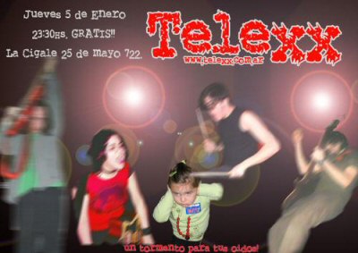 La agenda de este mes viene un tanto escasa. Para suerte de los que nos quedamos en la ciudad, una de las pocas bandas que se le animó a este enero de boom turístico es Telexx. El grupo antes se llamaba Coleco y ya tiene editado un EP que se puede bajar completo de su sitio web. También grabaron un cover de la canción Schizophrenia (Sonic Youth) y una interesante versión de Ruby Tuesday (The Rolling Stones), para el compilado It’s Only Indie Rock But I Like It.